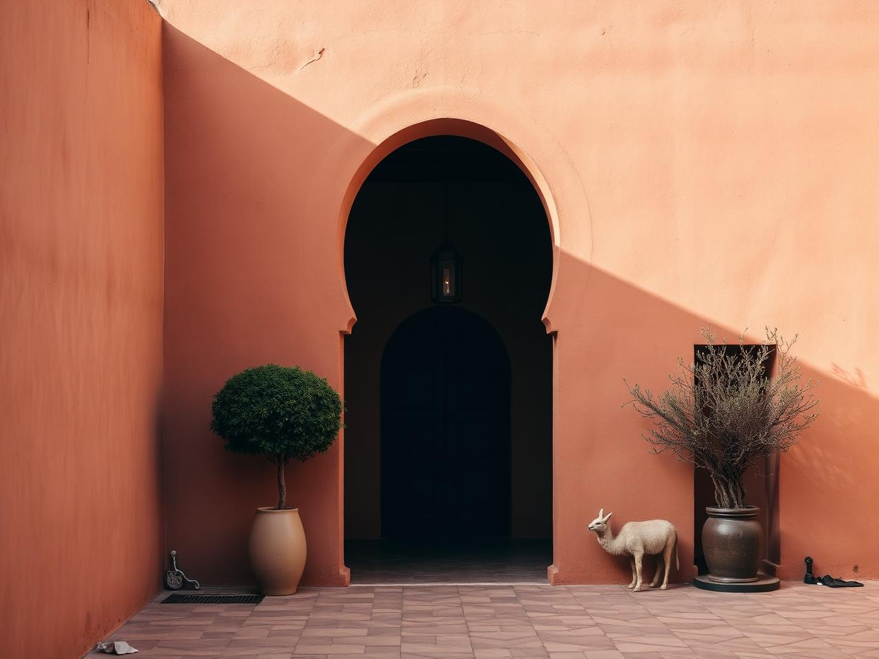 Terracotta walls, courtyard quiet.